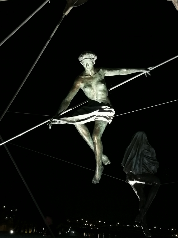 In Cracow Jerzy Kedziora ‘s poetic and visionary talent brought on the Vistula this circus of tightrope walkers and acrobats.